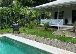 Located 12 kilometros south of Puerto Viejo, Manzanillo is the last stop at the end of the road. A quiet beach town made up of fisherman and rich in Caribbean culture. Manzanillo is home to the Gandoca Manzanillo Mixed Wildlife Refuge. This is a unique refuge and one of the largest in the region. The refuge begins on the beach side of the main road at the Rio Cocles to the Rio Ernesto in Punta Uva, where it then stretches well inland through Punta Uva, Manzanillo, Gandoca and up to the Sixaola River seperating Panama from Costa Rica. The refuge is a sanctuary for marine and wildlife and is one of the few parks along with Cahuita National Park that protect the surrounding Coral reef. It is a “mixed use” refuge, thus allowing individuals to live within it’s boundaries under a formal zoning and environmental regulatory plan. Land within the refuge but outside of the Maritime Zone can be titled and owned by private citizens. This is an area where most properties tend to be larger in size and a significant improvement in the quality and quantity of wildlife is well noted.