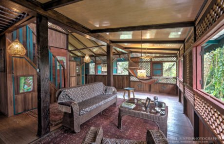 Not just a property with two uniquely different homes, but a serene sanctuary nestled in the jungle high on the hill. The 3,000 m2 fully titled, fully fenced grounds are surrounded by endless lush and vibrant natural beauty and wildlife. The main house was architecturally crafted with a Caribbean influence enveloping the local culture and feel. Warm rustic terra cotta tiles cover the welcoming front porch that invites you to unwind in one of the conversation areas hedged by tropical fruit trees. Spacious living areas include four bedrooms, two baths, a large open style kitchen featuring splashes of modern luxuries and fabulous living/relaxing room. Retreat to the the master bedroom on the third floor to enjoy your zen space on your private lookout balcony situated high above the tree tops. Enjoy the ocean view and listen to the waves break on the popular beach below in the quaint and internationally favoured town of Peurto Viejo. Far enough away but close enough enjoy a 5 minute stroll to the down town shops. Later take advantage of the fully lit road when the sun goes down.